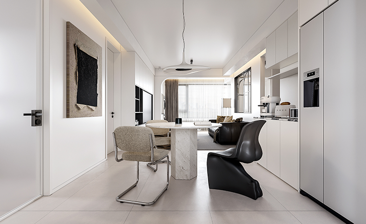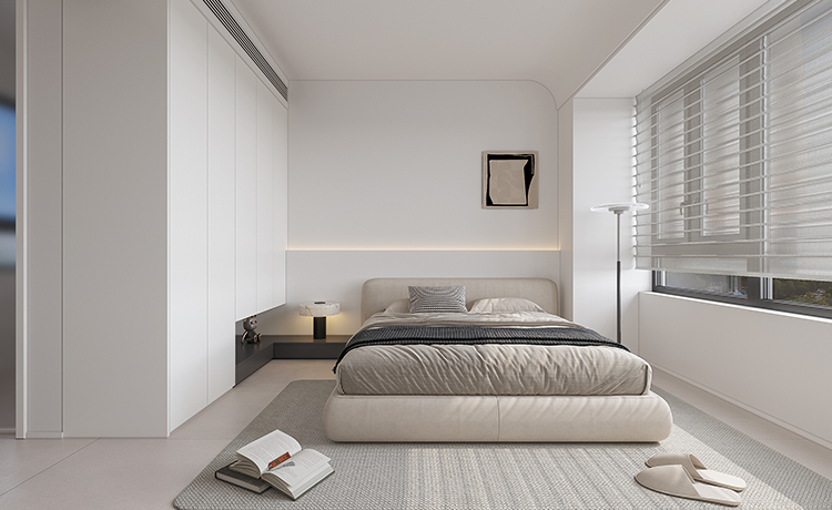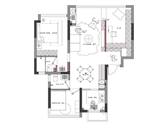 陽臺并入客廳,并與相連的書房打通,形成雙動線布局。保留雙衛(wèi)布局,并做干濕分離,迎合居住者的個性化生活需求。主臥室擴(kuò)容,提高睡眠環(huán)境的舒適度。