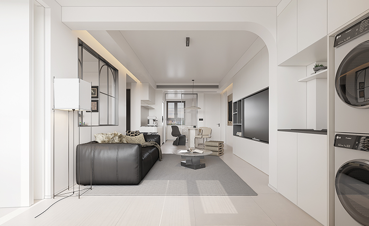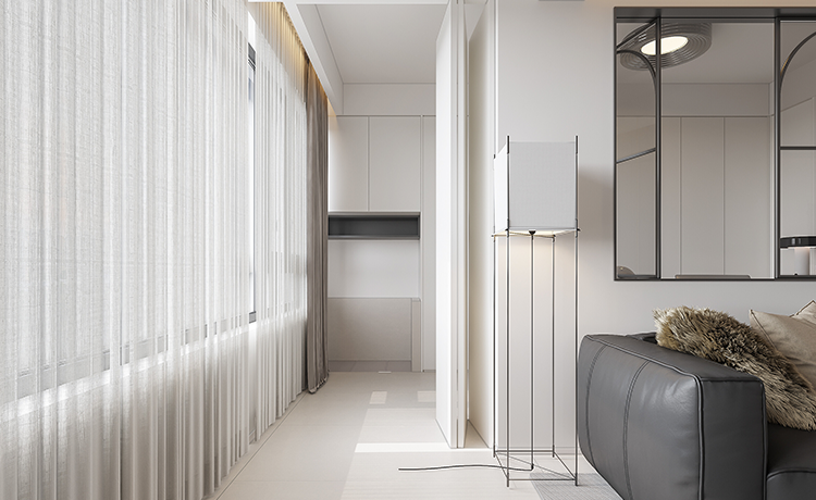 三室兩廳戶型,客廳是內(nèi)陽臺,改落地窗優(yōu)化室內(nèi)采光,并保留基礎(chǔ)的晾曬功能。次臥室將內(nèi)凹的不規(guī)則空間改成開放式衣帽間,化戶型缺點為優(yōu)勢。衛(wèi)生間改成三分離布局,不同功能區(qū)互不打擾,使用更方便。
